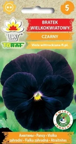Dvouletá rostlina s kompaktně kulovitým tvarem, vysoká 15-25cm, s velkými, velkolepými černými květy.