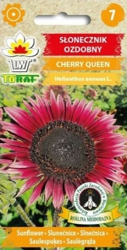 Slunečnice, Cherry Queen je jednoletá rostlina, která se stává ozdobou každé zahrady díky svým jedinečným červeným květům. Velmi originální, středně vysoká 100-120cm. Odrůda s krásnými, vyšňově bordovými květy s tmavě hnědým středem. Okouzlí vaší zahradu. Krásně se bude vyjímat u plotů, nízkých zídek i jako pozadí na výších květinových skalkách. Skvěle se hodí jako řezaná květina. Preferuje slunná stanoviště a úrodnou půdu. Kvete od července do září